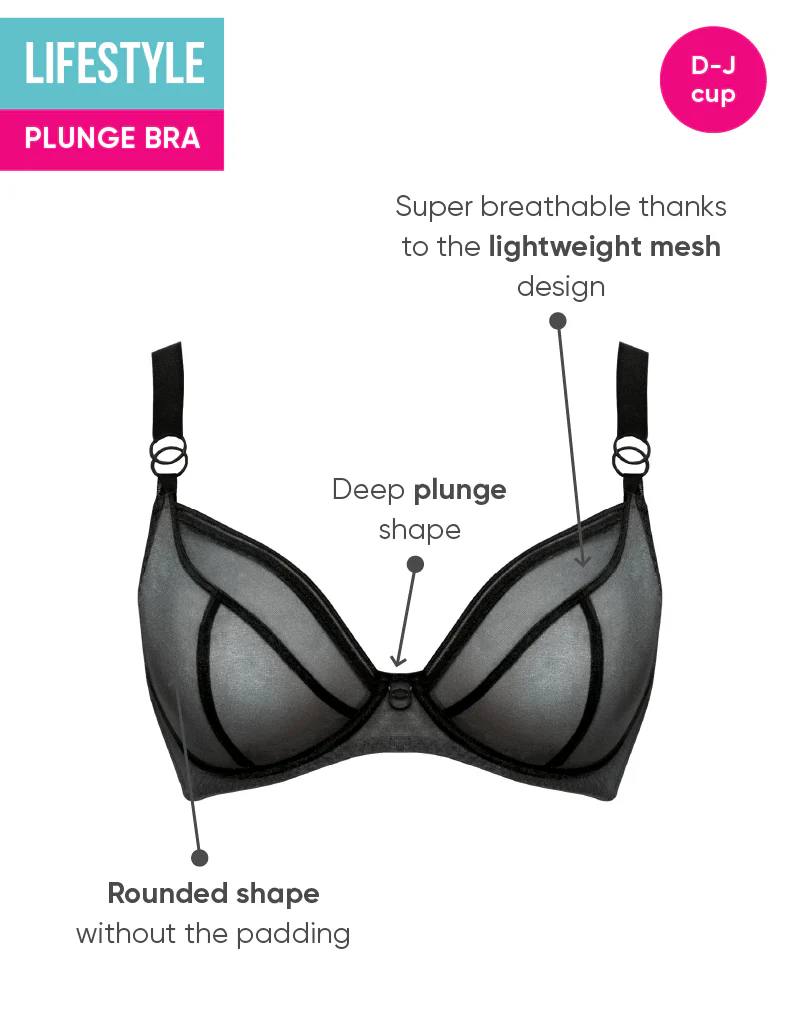 The Lifestyle Sheer Plunge Bra is flirtatious and fun whilst it lifts and shapes for added support. A simple yet stylish fully sheer plunge bra is perfect for everyday wear